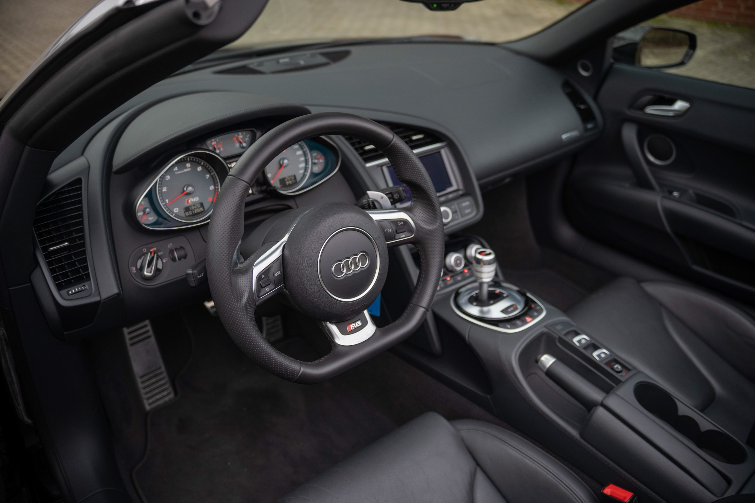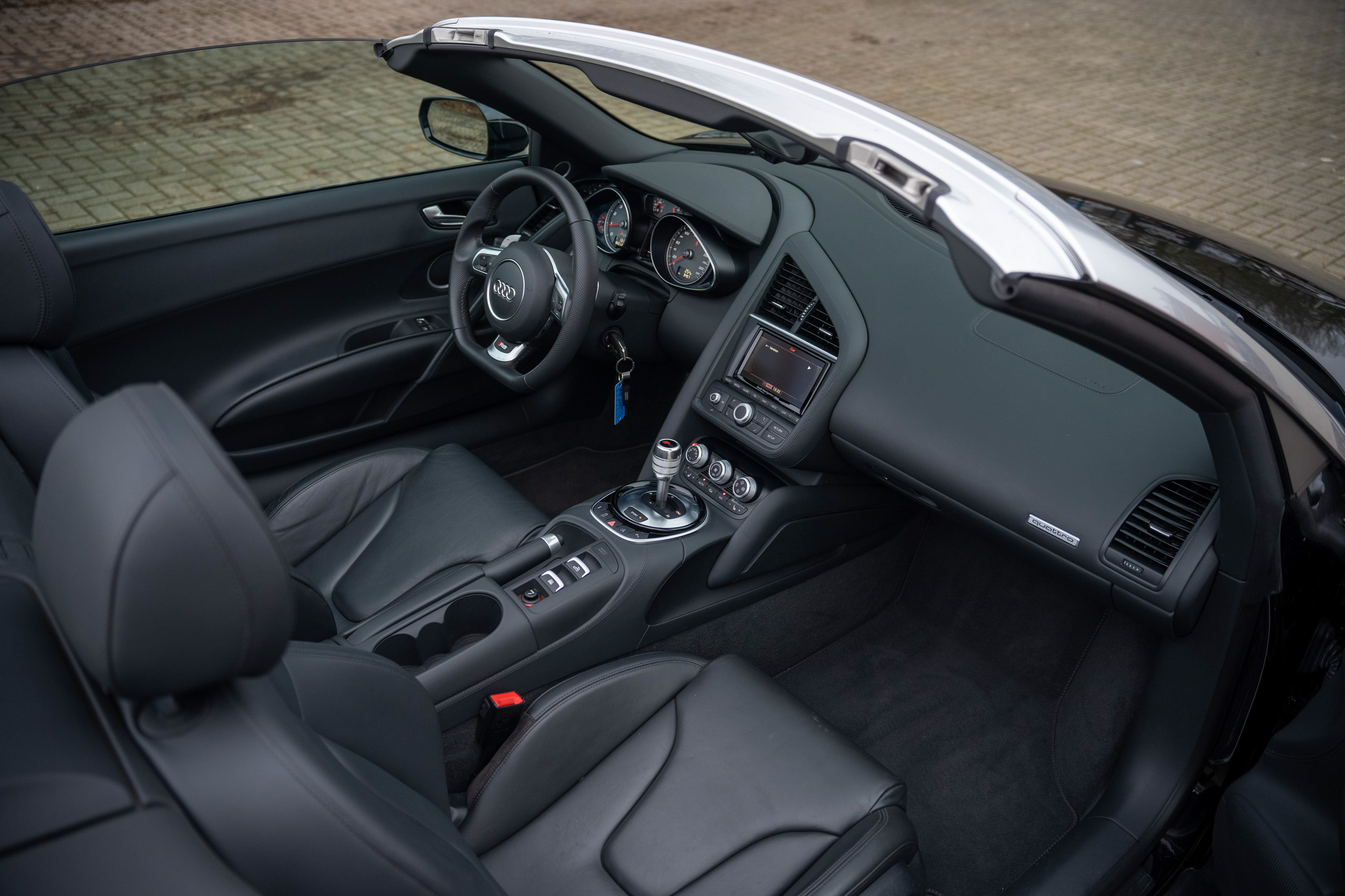 Ablage-Paket, Audi music interface, Außenspiegel elektr. klappbar, mit Abblendautomatik, Einparkhilfe vorn und hinten, optisch mit Rückfahrkamera (APS Advanced), Einstiegsleisten mit Aluminiumeinlage Audi exclusive, beleuchtet, Fahrassistenz-System: Berganfahr-Assistent, Fahrassistenz-System: Fernlichtassistent, Fahrwerk mit Dämpferregelung (Magnetic Ride), Innenausstattung: Voll-Leder Feinnappa, Licht-Paket, LM-Felgen vorn/hinten: 8,5×19 / 11×19 (5-Doppelspeichen, Titanoptik), Multi-Media-Interface MMI Navigation Plus, Pedale Aluminium, Sender für Garagentoröffner (integriert), Sitze vorn elektr. verstellbar, Sound-System Bang & Olufsen, Vorrüstung Mobiltelefon/Handy (Bluetooth) inkl. Gurtmikrofon